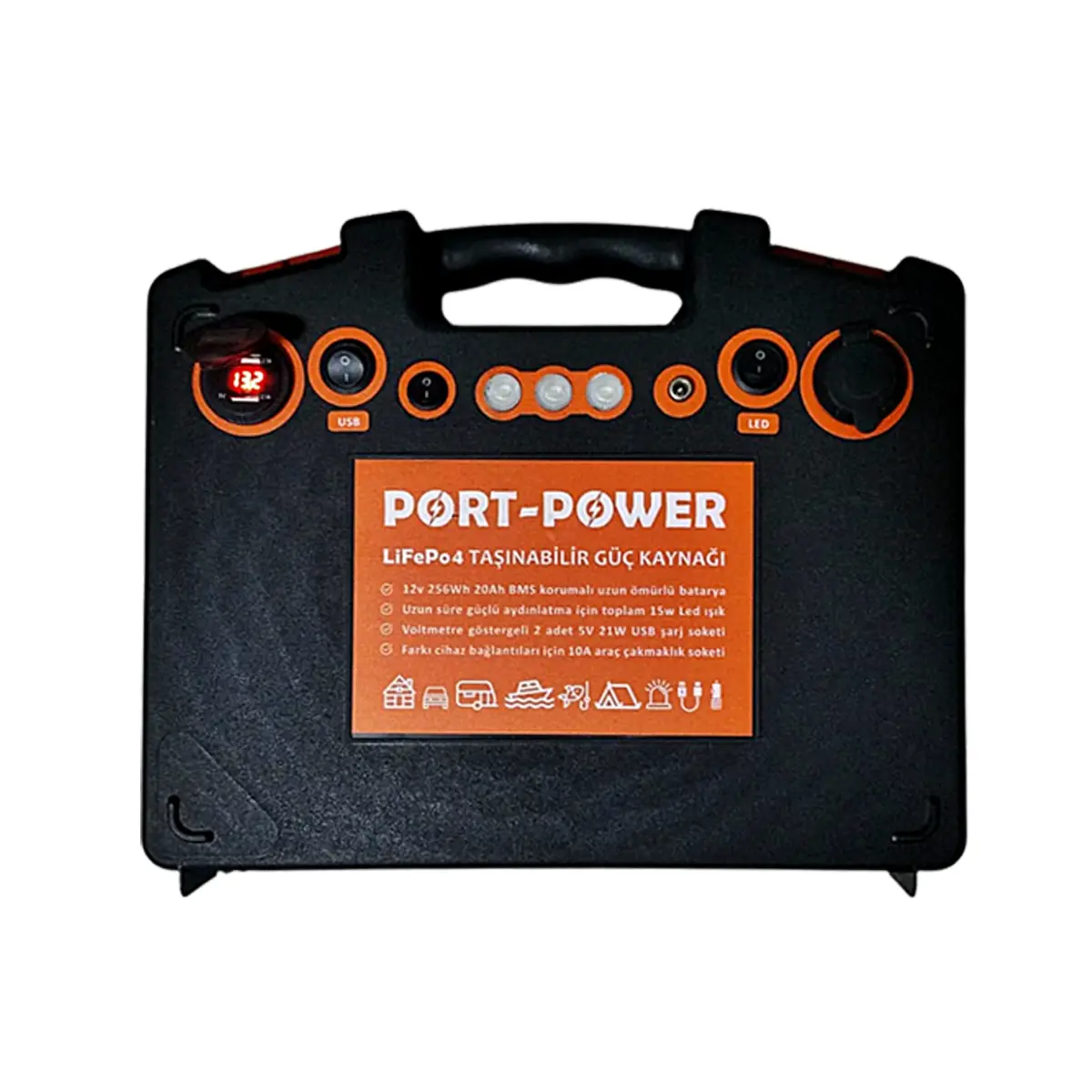 • 12 Volt 20Ah 256Wh BMS korumalı uzun ömürlü LiFePo4 batarya